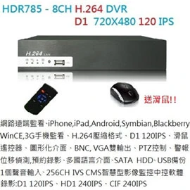 HDR785 8路H.264 DVR數位錄影機/監視器材(VGA/網路/滑鼠/USB/遙控/iPad,iPhone,Android手機監看/256CH CMS)